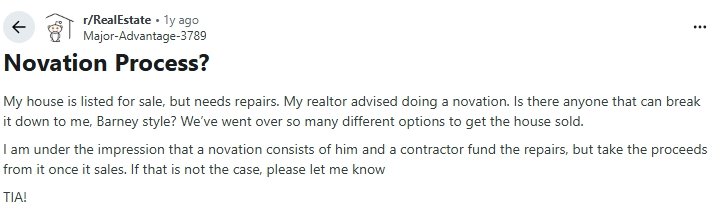 Unlike wholesaling, the end buyer closes directly with the seller, not the investor. Below is a real example of someone from Reddit that was advised to do a Novation.