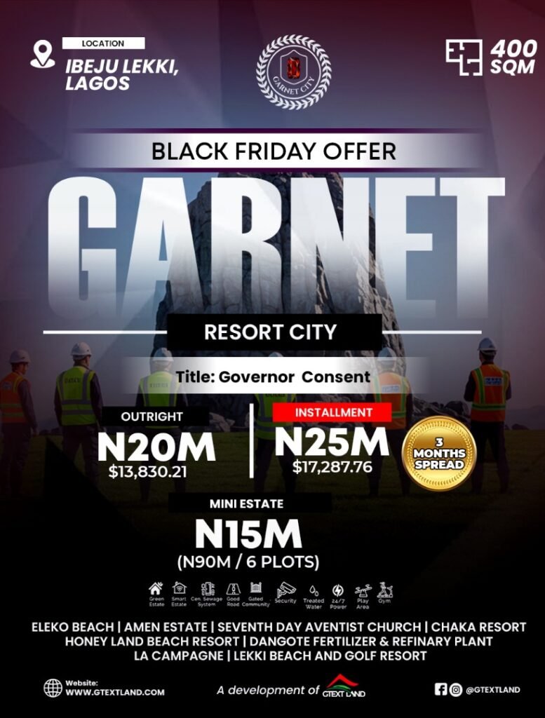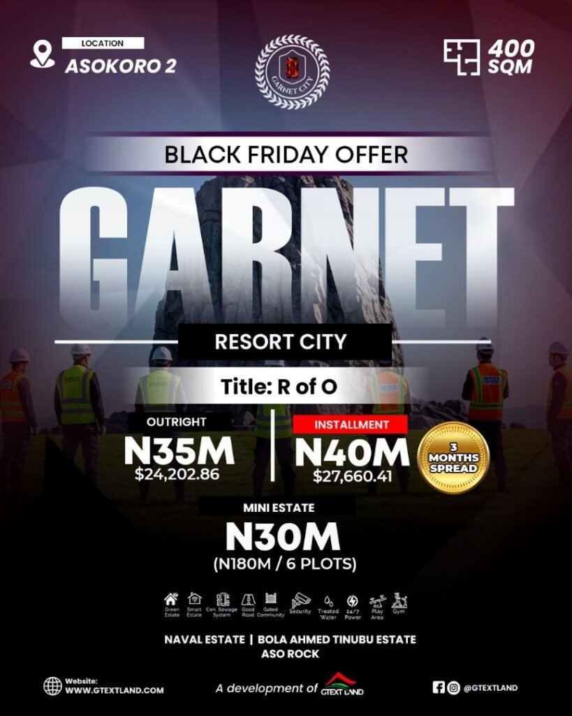3. Garnet Asokoro Resort City: location- Asokoro Abuja, Ibeju-lekki Lagos.