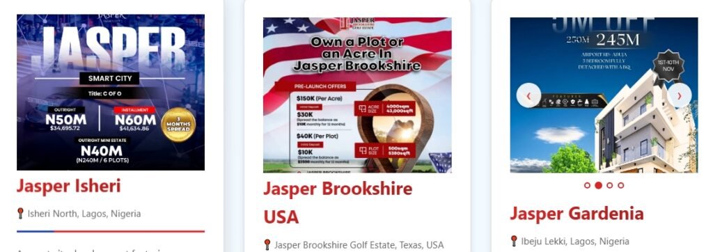 9. Jasper Isheri, Jasper Brookshire USA, Jasper Gardenia: Location- Isheri, Texas USA, Ibeju lekki.